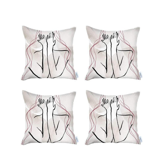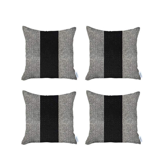 Set Of Four 18" X 18" Black And Grey Abstract Zippered Handmade Polyester Throw PillowRegular price $117.33 USDRegular priceUnit price / per-