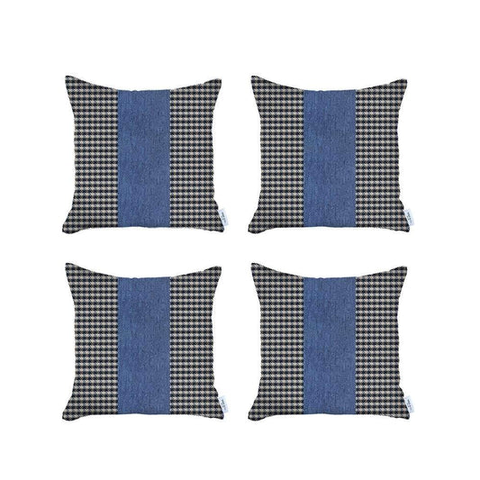 Set Of Four 18" X 18" White And Blue Houndstooth Zippered Handmade Polyester Throw PillowRegular price $119.93 USDRegular priceUnit price / per-