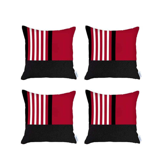 Set Of Four 18" X 18" Red And Black Geometric Zippered Handmade Polyester Throw PillowRegular price $118.93 USDRegular priceUnit price / per-