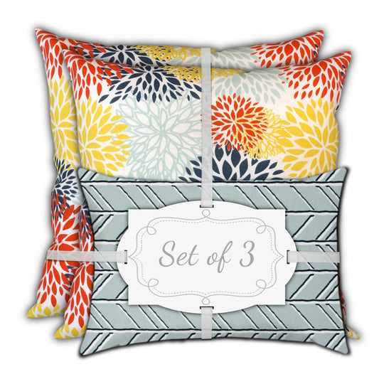 Set Of Three 18" X 18" Turquoise And Green Blown Seam Floral Throw Indoor Outdoor Pillow
