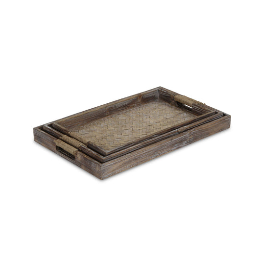 Set Of Three 19" Brown Rectangular Wood Handmade Trays With Handles