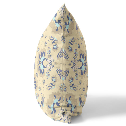 16" X 16" Yellow And White Floral Blown Seam Suede Throw Pillow