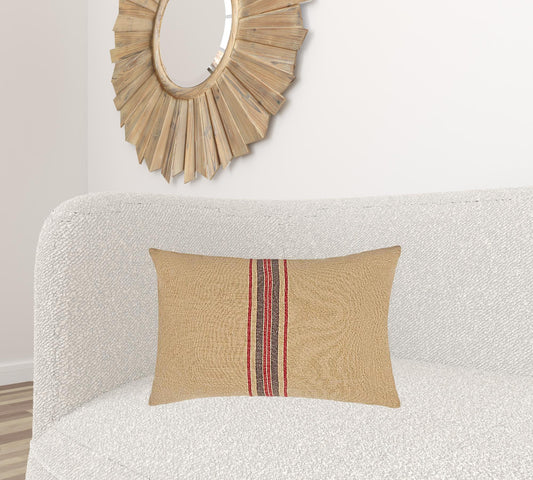 16" X 24" Brown and Red Striped Linen Blend Zippered Pillow