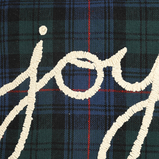 16" X 24" Blue and Black Christmas Plaid Cotton Zippered Pillow With Embroidery