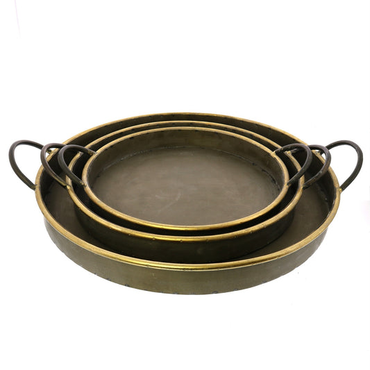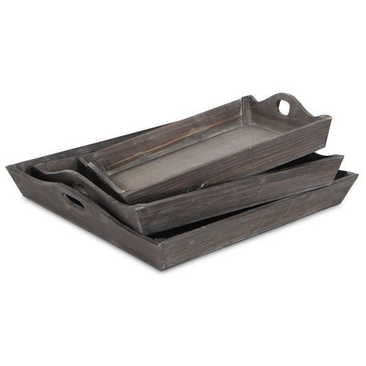 Set Of Three Rustic Brown Wood Handmade Trays With Handles