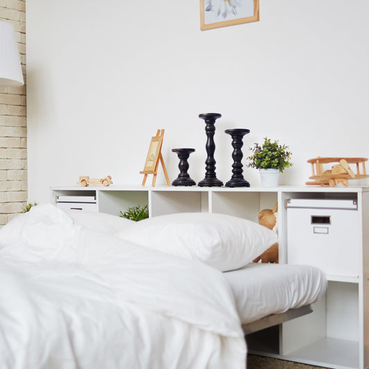 Set of Three Matte Black Genuine Wood Hand Carved Pillar Candle Holders
