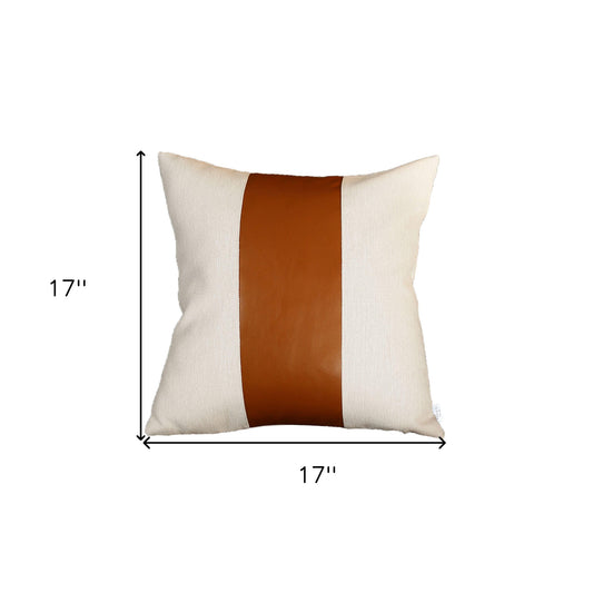 Set Of Two 17" X 17" Brown and Ivory Faux Leather Zippered Pillow Cover