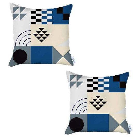 Set Of Two 18" X 18" Blue And Grey Geometric Zippered Handmade Polyester Throw Pillow
