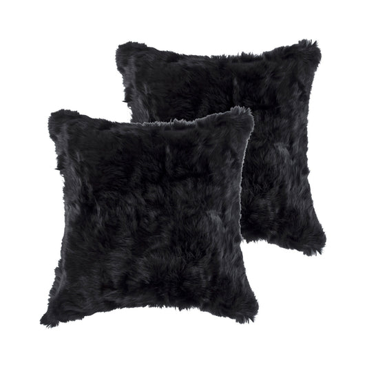 Set Of Two 18" X 18" Black Rabbit Natural Fur Animal Print Throw Pillows