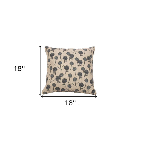 Set Of Two 18" x 18" Beige and Blue 100% Cotton Artichoke Pillow