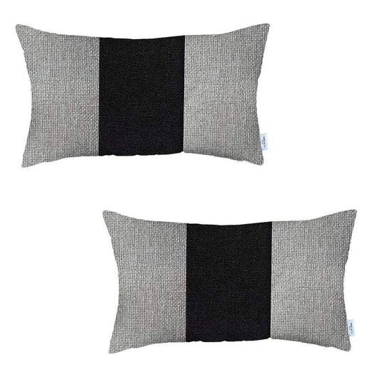 Set Of Two 20" X 12" Grey And Black Geometric Zippered Handmade Polyester Lumbar Pillow