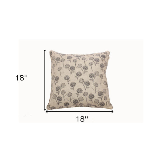 Set Of Two 18" x18" Beige and Charcoal 100% Cotton Artichoke Pillows