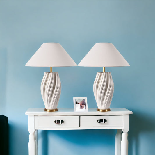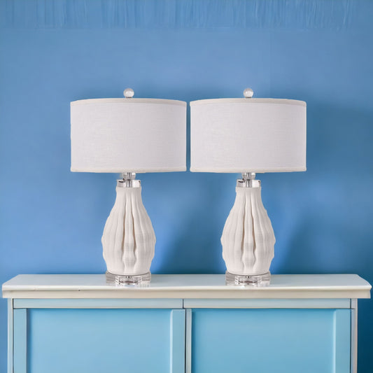 Set of Two 22" White Ceramic Bedside Table Lamps With White Shade