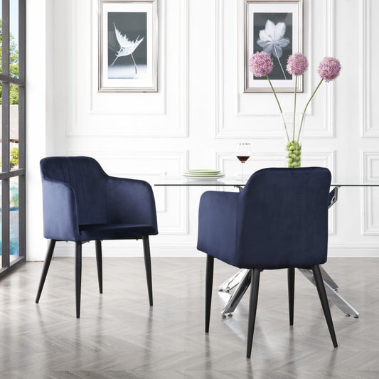 Set Of Two 21" Black Velvet And Black And Gold Solid Color Side Chair