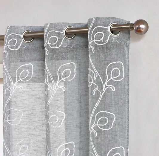 Set of Two 84" Silver Floral Embroidered Window Panels