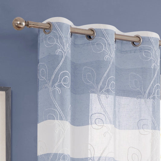 Set of Two 96" Blue Striped Floral Embroidery Window Panels