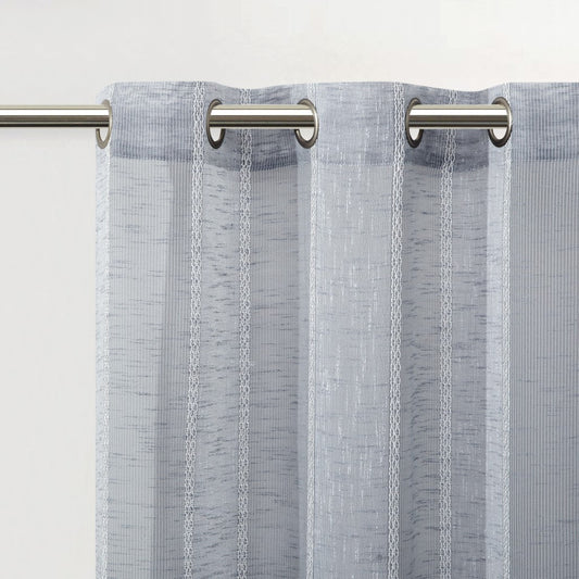 Set of Two 96" Silver Stripe Embroidered Window Panels