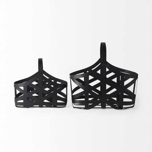 Set Of Two Black Flameless Floor Lantern Candle Holder