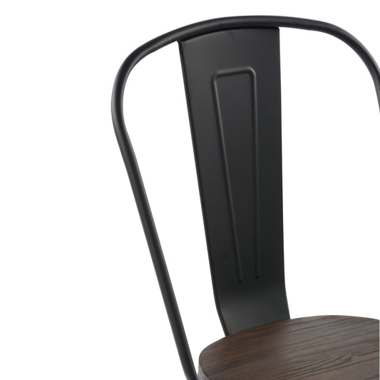 Set Of Two Black and Brown Wood and Metal Slat Back Dining Chairs
