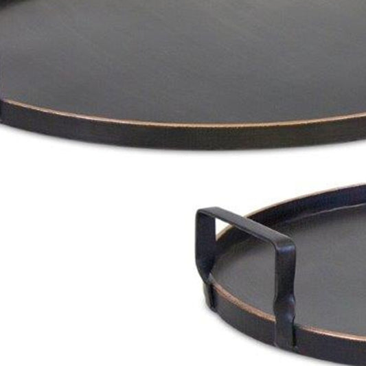 Set Of Two Black and Gold Round Metal Serving Tray With Handles