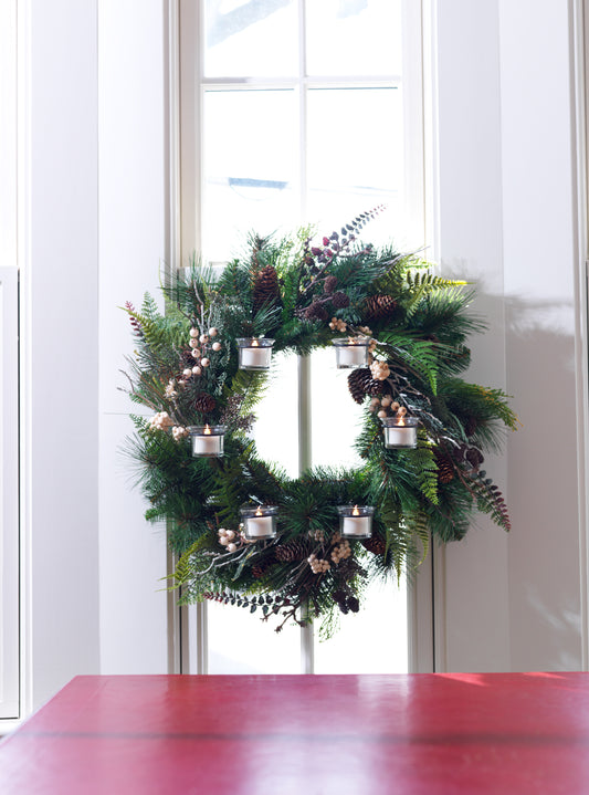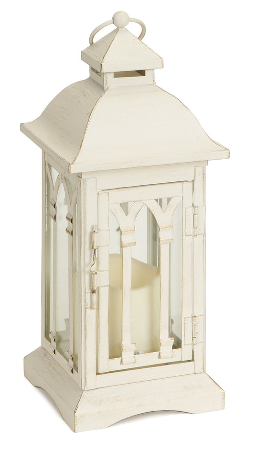 Set Of Two Beige LED Floor Lantern Candle Holder