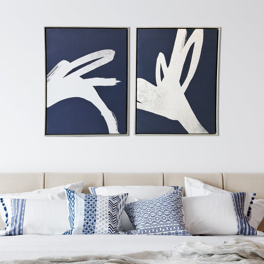 Set of Two Bold Blue and White Abstract Framed Canvas Wall Art
