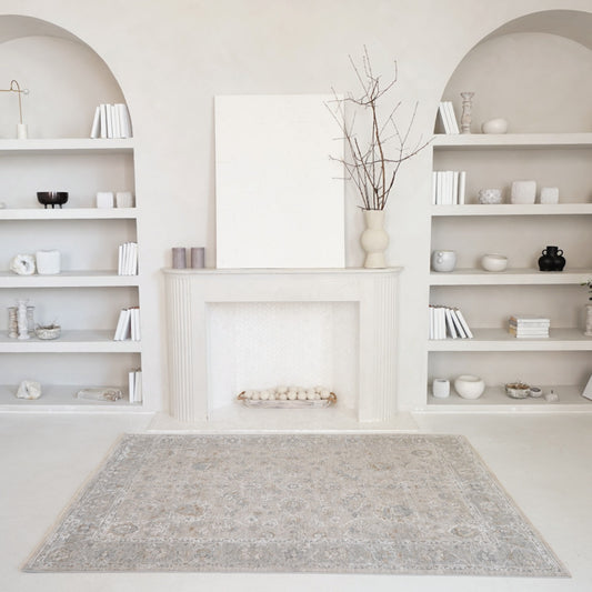 6' X 9' Grey Medallion Distressed Washable Area Rug