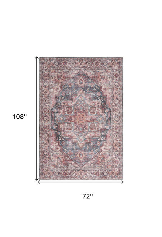 6' X 9' Multicolor Medallion Distressed Washable Area Rug