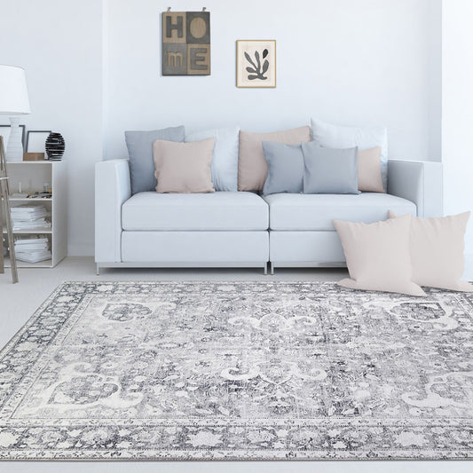 6' X 9' Charcoal Medallion Power Loom Stain Resistant Area Rug