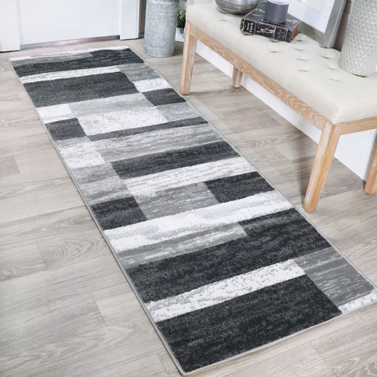 8' Charcoal Patchwork Power Loom Stain Resistant Runner Rug