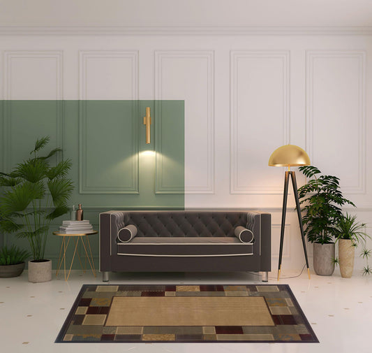 5' X 8' Ivory Green Brown Blue And Rust Floral Power Loom Stain Resistant Area Rug