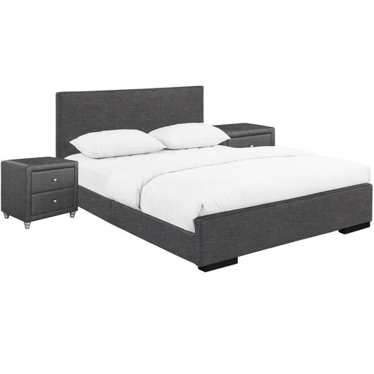 Solid Wood Full Tufted Silver Upholstered Linenno Bed With Nailhead Trim