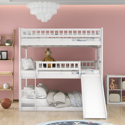 White Full Over Full Over Full Contemporary Bunk Bed With Slide