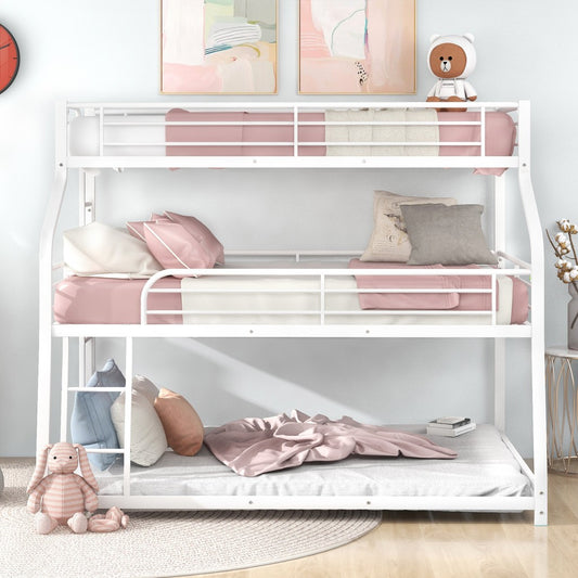 White Twin XL over Full XL over Queen Size Bunk Bed