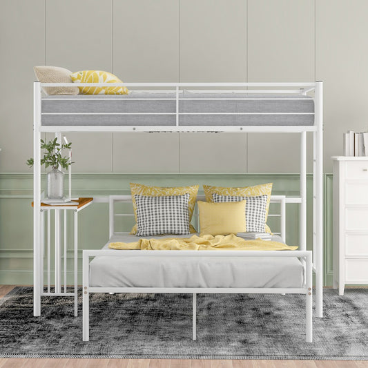 White Twin Over Full Size Metal Bunk Bed with Desk