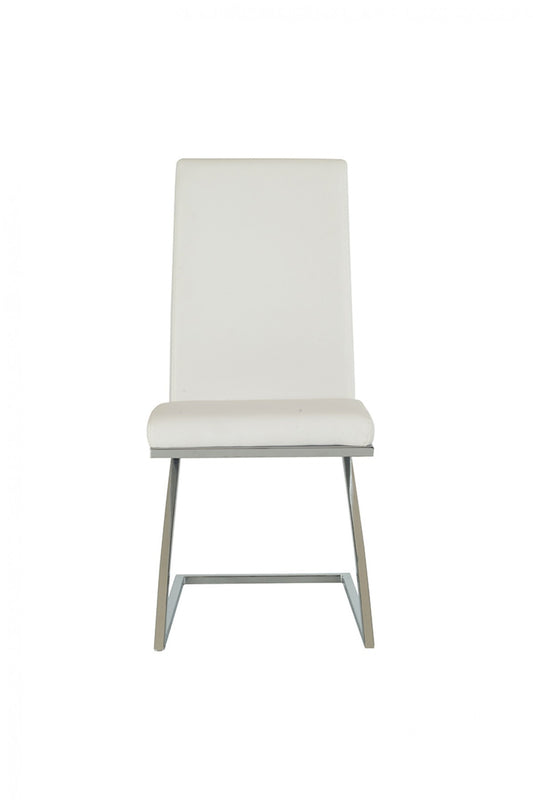 Set Of 2 Modern White Faux Leather And Chrome Dining Chairs