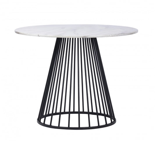 43" White And Black Rounded Manufactured Wood And Metal Dining Table