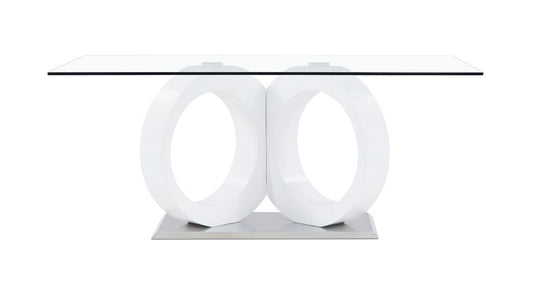 White Tone Geometrical Style Base With Rectangular Glass Top Dining Table