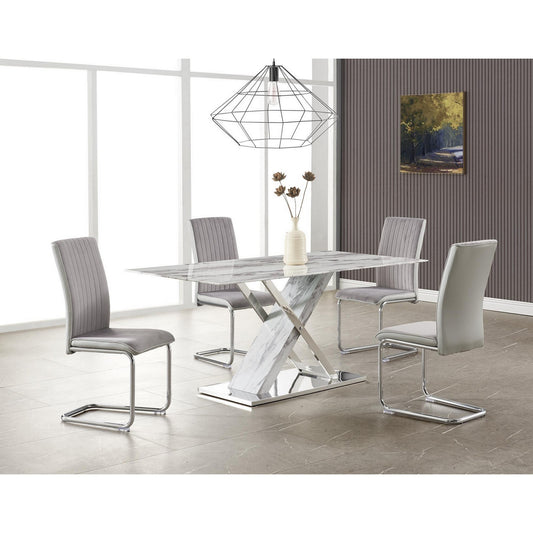 71" White Marble And Silver Rectangular Marble And Stainless Steel Dining Table
