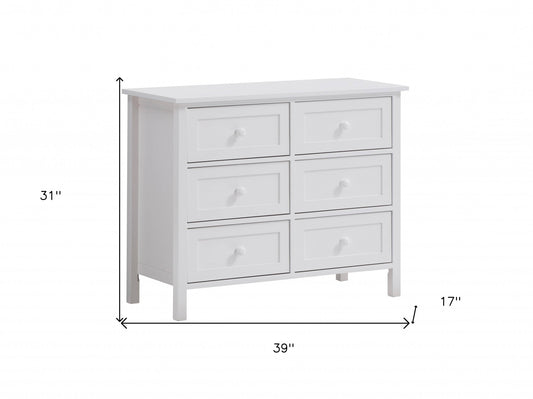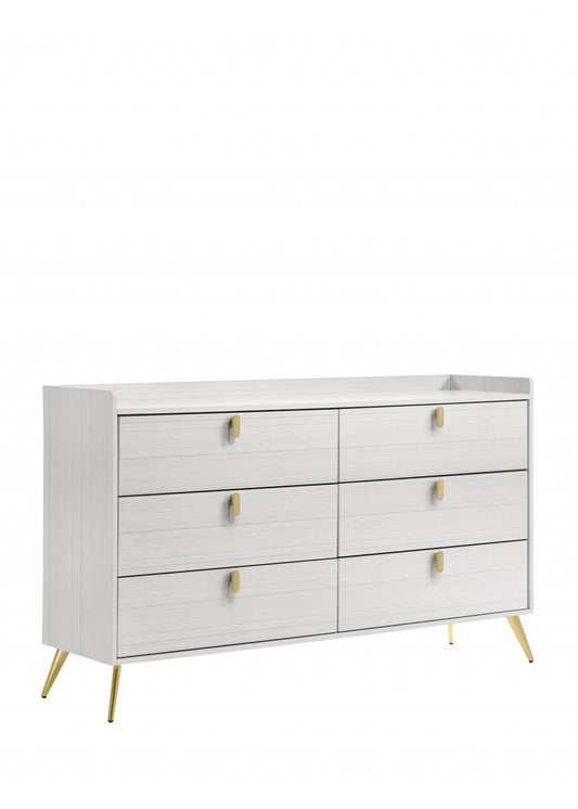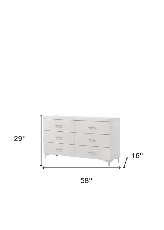 58" White Solid and Manufactured Wood Six Drawer Double Dresser