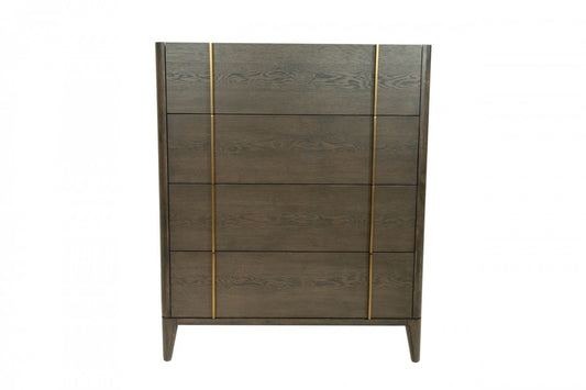 39" Dark Brown and gold Solid Wood Four Drawer Dresser