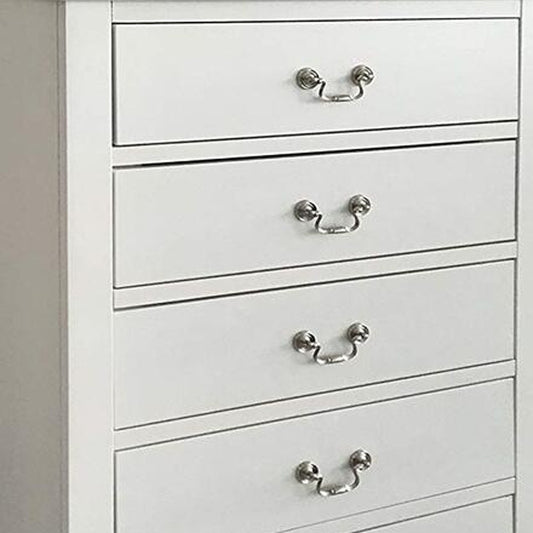 Modern White Chest With 5 Faux Marble Detailed Front Drawer.