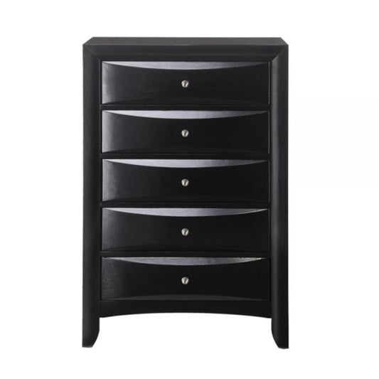 48" Oak Finish 5 Drawer Chest Dresser With Brass Metal Hardware