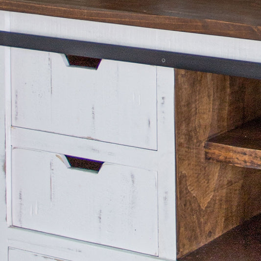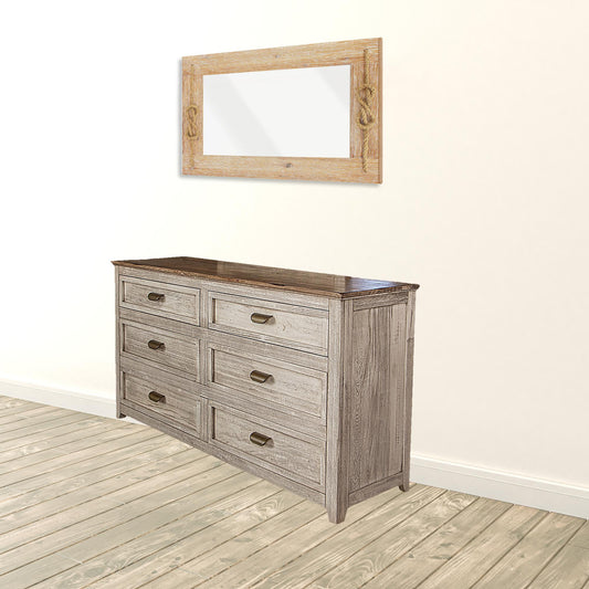 56" Brown and White Solid Wood Six Drawer Triple Dresser