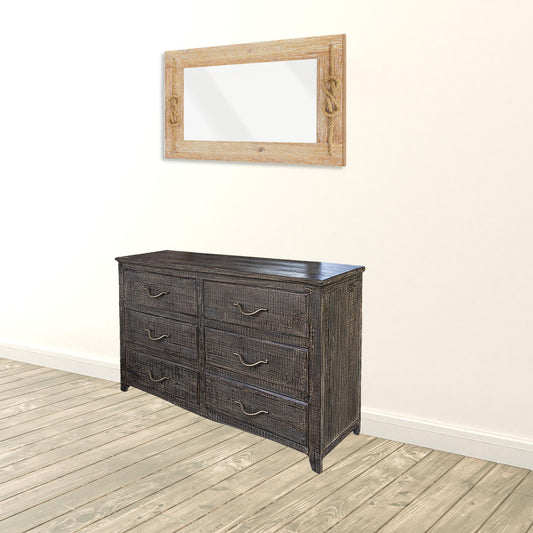 56" Dark Brown Solid Wood Six Drawer Double Dresser