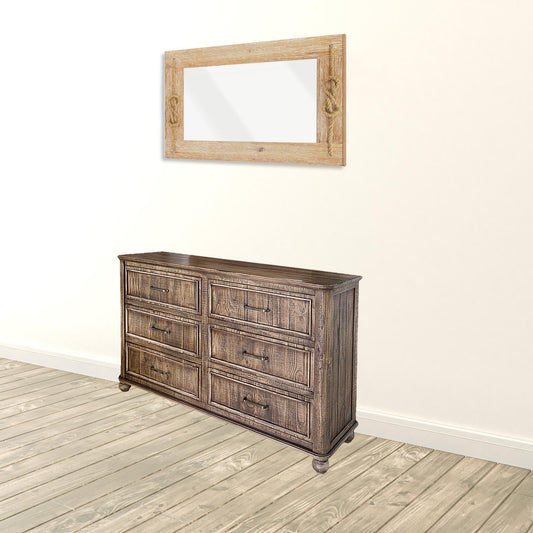 63" Brown Solid Wood Six Drawer Triple Dresser