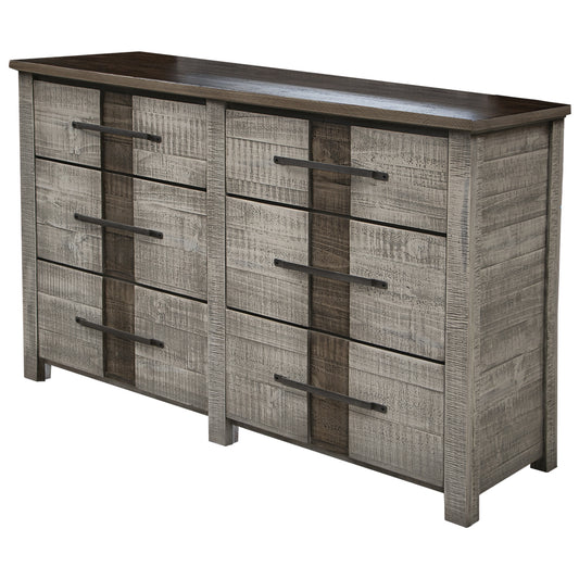 62" Gray Solid Wood Nine Drawer Triple Dresser