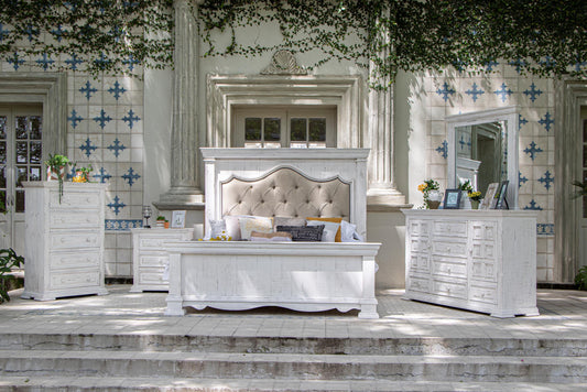 70" Antiqued White Solid Wood Six Drawer Double Dresser