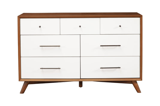 56" Brown and White Solid Wood Seven Drawer Double Dresser