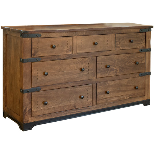 64" Natural Solid Wood Seven Drawer Double Dresser